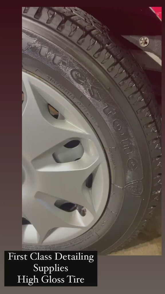 First Class Tire High Gloss is our premium solvent based high gloss protection for your tires, trim, rubber molding and vinyl.